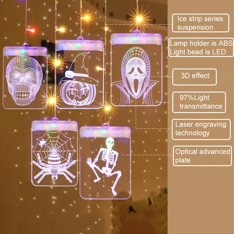 Best Quality USB Powered Halloween 3D Acrylic Sign Light Holiday Window Ceiling Wall Hanging Fairy Lighting