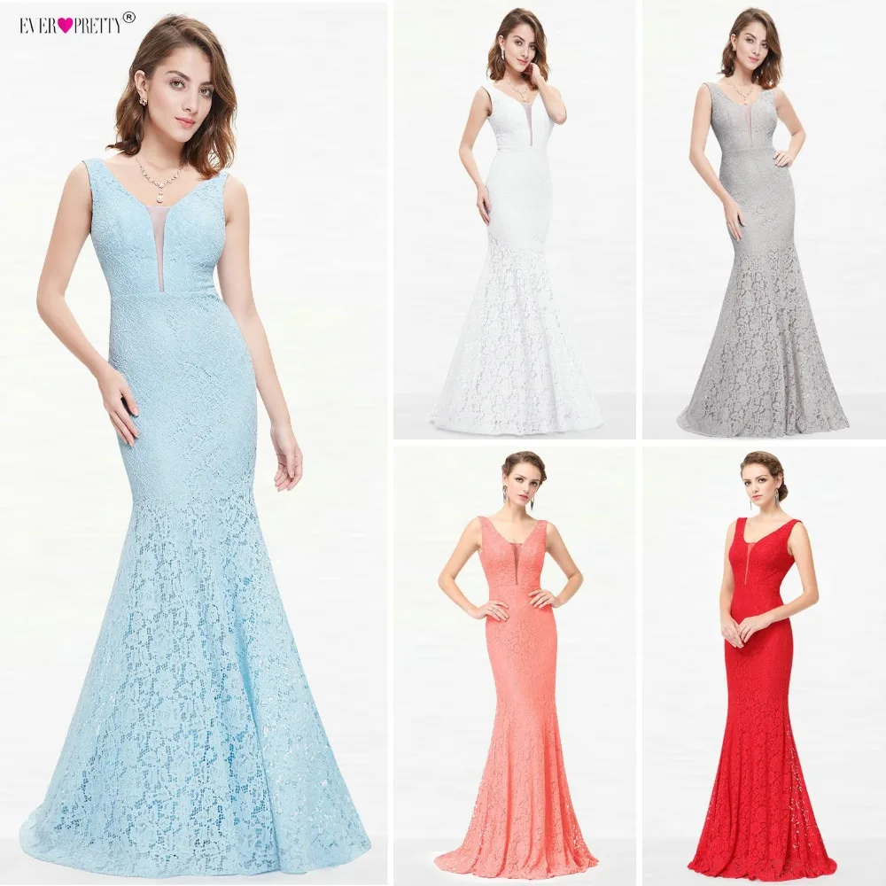 Best Quality Lace Mermaid Prom Dresses Long 2020 Ever Pretty EP08838 Christmas Holiday Party Sexy V-Neck Elegant